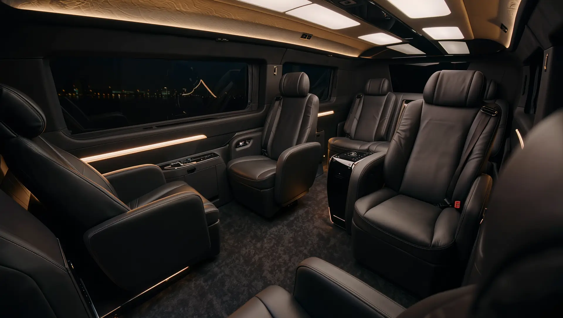 הבחירה המועדפת על קבוצות VIP ואנשי עסקים. עד 6 נוסעים במושבי עור מפנקים, חלל עבודה מרווח ופרטיות מוחלטת.